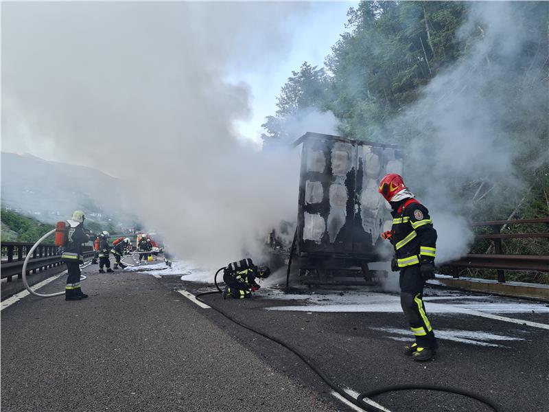 All'arrivo dei Vigili del Fuoco l'intero camion, che trasportava piastrelle e abbigliamento, era invaso dalle fiamme. Il rogo sull'A22 ha innescato anche il bosco nelle vicinanze.