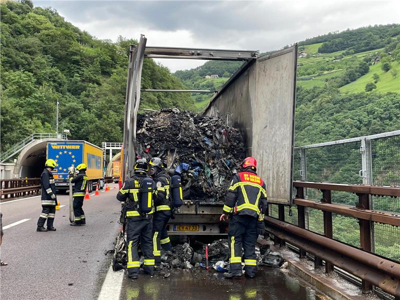Nel pomeriggio odierno, alle ore 16:17, questo Corpo Permanente dei Vigili del Fuoco di Bolzano è stato chiamato per un incendio di autoarticolato in autostrada del Brennero A22.