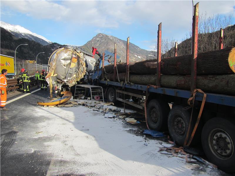 Un autotreno caricato con tronchi ha violentemente impattato un'autocisterna contenente grasso animale. Il conducente dell'autotreno è deceduto sul colpo. L'autista dell'autocisterna è rimasto illeso. Nell'impatto la cisterna è rimasta danneggiata e il grasso liquido si è esteso sulla careggiata e nel prato limitrofo. Un terzo autoarticolato è rimasto coinvolto nella dinamica incidentale ma non ha subito danni di rilievo.