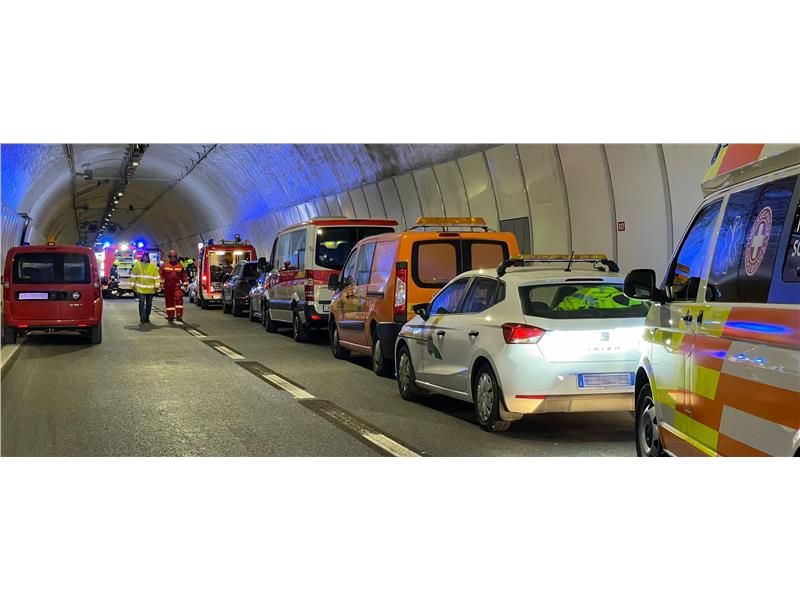 Il Corpo permanente Vigili del fuoco interviene secondo ordini di partenza predefiniti in base alla segnalazione prevenuta. L'ordine di partenza 'incidente stradale in galleria' prevede i mezzi di intervento VCI (veicolo di comando incidente), l'autobotte pompa con 11.000 litri di acqua, il carro attrezzi e il carro attrezzi avanzato dotati di mezzi per intervenire negli incidenti stradali. Inoltre si aggiungono un ventilatore per gallerie stradali (400.000m³/min di flusso) e un mezzo fuoristrada appositamente adottato per interventi in galleria. In caso di 'incidente stradale con mezzo pesante' interviene sempre anche l'autogru del Corpo permanente.