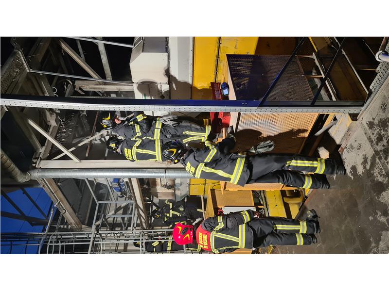 Dopo l'evacuazione dell'area interessata, la squadra dei Vigili del fuoco permanenti è riuscita a localizzare e spegnere l'incendio. Un grande contenitore per lo stoccaggio dei trucioli di carta è stato spostato da uno scarrabile per facilitare le misure di spegnimento.