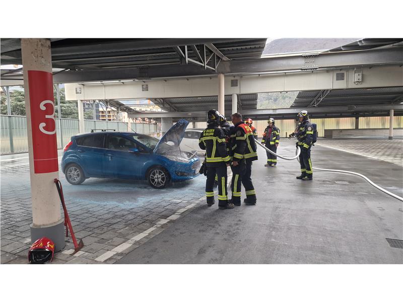 Intorno alle 11:30 il primo allarme incendio al parcheggio in via Mayr-Nusser . Dei passanti notavano un mezzo in principio di incendio e grazie ad un estintore