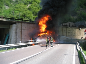 FOTO BF VVF BZDomenica, 27.06.2004 verso le ore 10:30 un bilico frigo danese si è ribaltato sulla statale del Brennero a nord di Prato Isarco e ha preso fuoco. L'autista, leggermente ferito, è riuscito ad uscire dalla cabina da solo.Le squadre dei vigili del fuoco del corpo permanente di Bolzano e dei vigili volontari di Campodazzo e Ponte Gardena hanno spento l'automezzo incendiato, utilizzando diverse lance.Dopo le fasi di spegnimento, il carico di carne è stato trasportato al macello di Bolzano per essere smaltito. Il bilico bruciato è stato recuperato da un autogru dei vigili del fuoco del corpo permanente di Bolzano, è stato caricato su di un semirimorchio e portato via. Durante le fasi di spegnimento e di recupero del mezzo, la statale è rimasta completamente chiusa al traffico per diverse ore.Nelle prime fasi dello spegnimento, a causa dello sviluppo di notevole quantitá di fumo, si è reso necessario chiudere la corsia nord dell`A 22 che si trovava nelle immediate vicinanze al luogo dell' incendio.