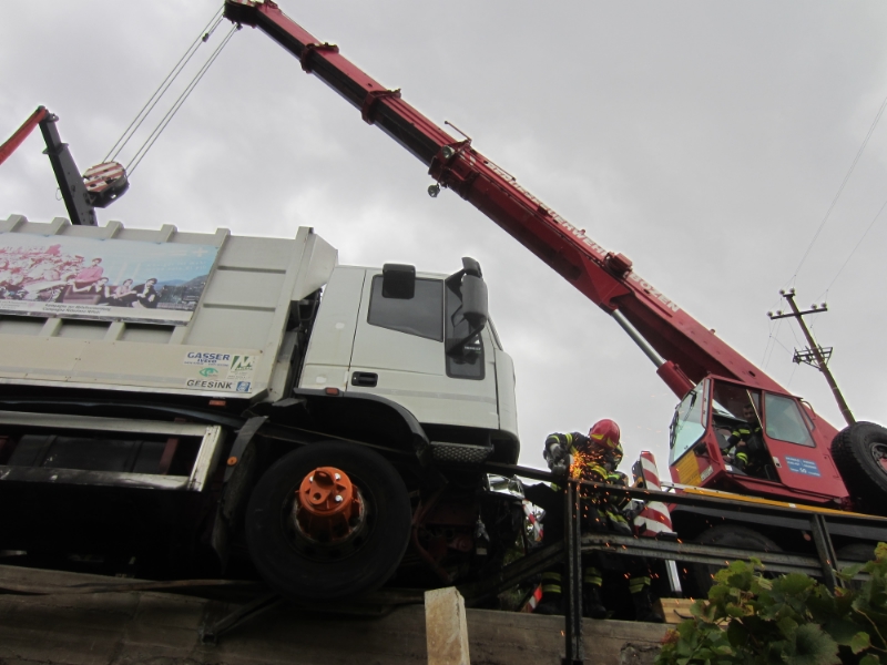 07.10.2013 - Un mezzo pesante minaccia di precipitare oltre un muro di sostegno