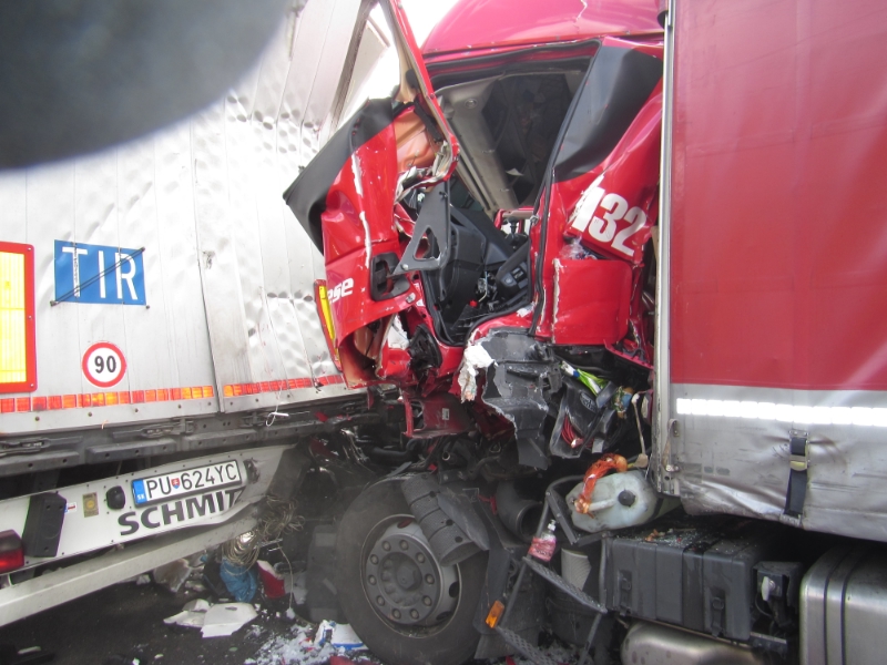 Nell'incidente sono rimasti coinvolti ben 4 autoarticolati, un autista rumeno è rimasto incastrato nell'abitacolo ed ha subito lievi ferite.