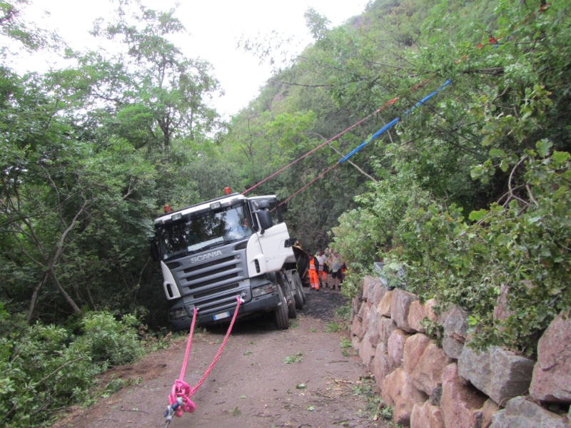 24.06.2014 - Camion rischia di precipitare oltre il margine della strada.