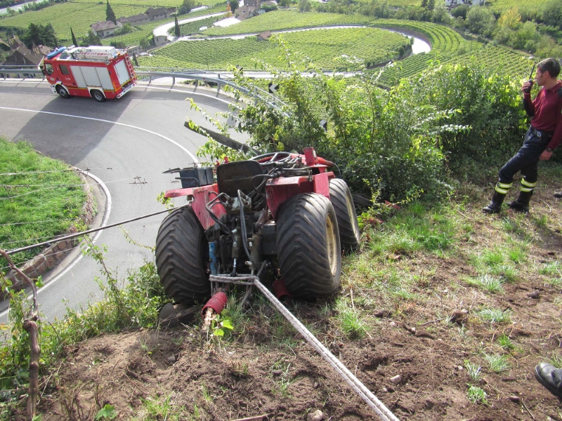 Intervento alle 16:30 per i vigili del fuoco del Corpo Permanente al maso Loacker di Santa Giustina. Un piccolo trattore perdendo aderenza sul terreno era scivolato in un vigneto e minacciava di cadere sulla strada provinciale del Renon. Fortunatamente il conducente il mezzo agricolo ha avuto la prontezza di spirito di saltare dalla macchina rimanendo fortunatamente illeso.