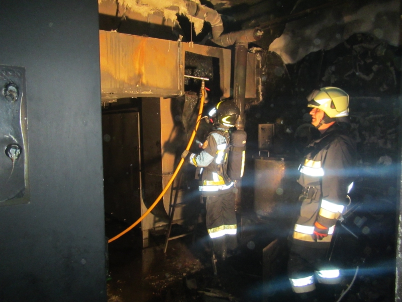 Ingenti danni nel locale tecnico a seguito dell'incendio.
