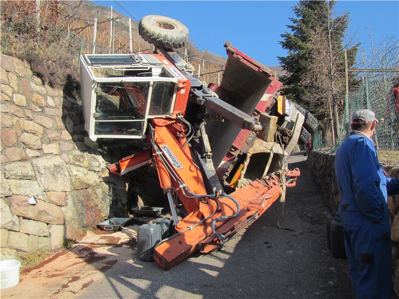 Intorno alle 10:00 di questa mattina l'autogru del corpo permanente dei vigili del fuoco di Bolzano assieme ad una squadra dei vigili del fuoco volontari di Bolzano sono intervenuti a Santa Maddalena ove un mezzo pesante caricato con un escavatore del peso di 8,5 tonnellate si é rovesciato sulla ripida stradina. Fortunatamente il conducente é rimasto illeso ma i lavori di recupero dei due mezzi si sono protratti fine al tardo pomeriggio.
