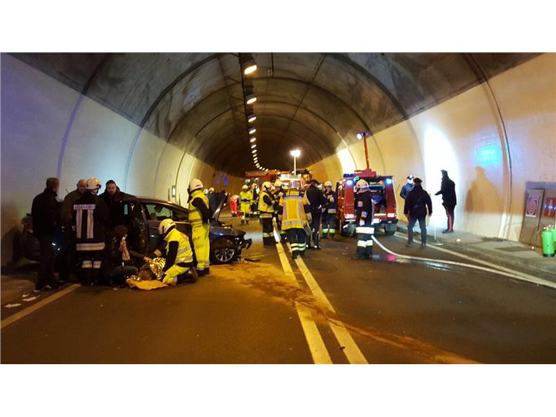 L'ultimo intervento della giornata é risultato essere il piú grave per le persone coinvolte: 4 feriti in uno scontro frontale tra due autovetture avvenuto nel tunnel della strada per la val d'Ega. Sul luogo d'intervento sono intervenuti, oltre al personale del Corpo Permanente dei vigili del fuoco di Bolzano, i vigili del fuoco volontari di Cardano e Ega, il personale sanitario della Croce Bianca e Croce Rossa, l'elicottero di soccorso Pelikan 1 ed i Carabinieri per i rilievi del caso.