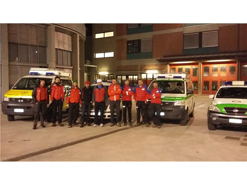 CNSAS, BRD e soccorritori alpini del Tirolo del Nord e del Est con sonda valanghe a vapore nella zona di intervento.