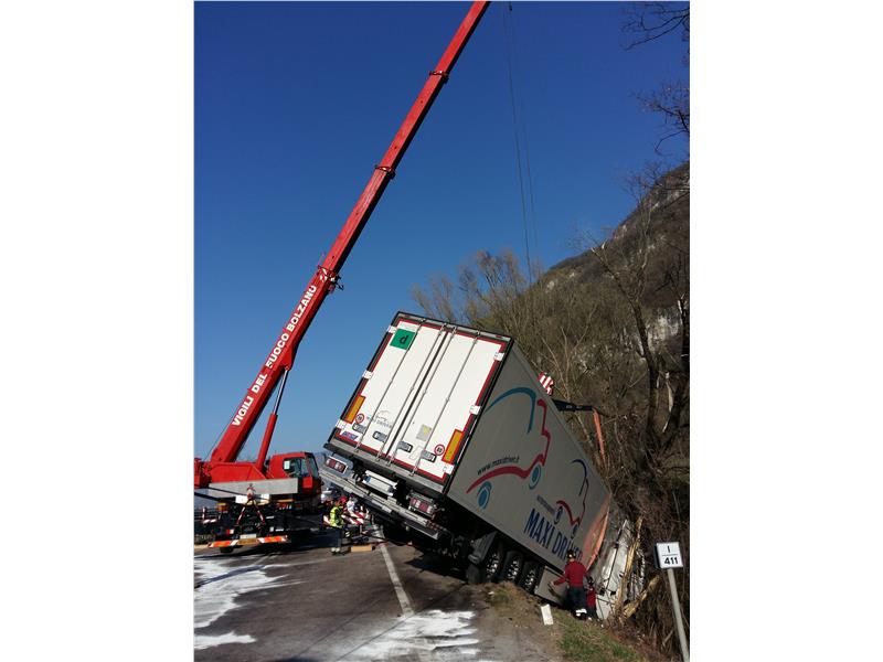 Il camion é stato recuperato dalla squadra del corpo permanente dei vigili del fuoco di Bolzano con il supporto di una ditta di soccorso stradale.