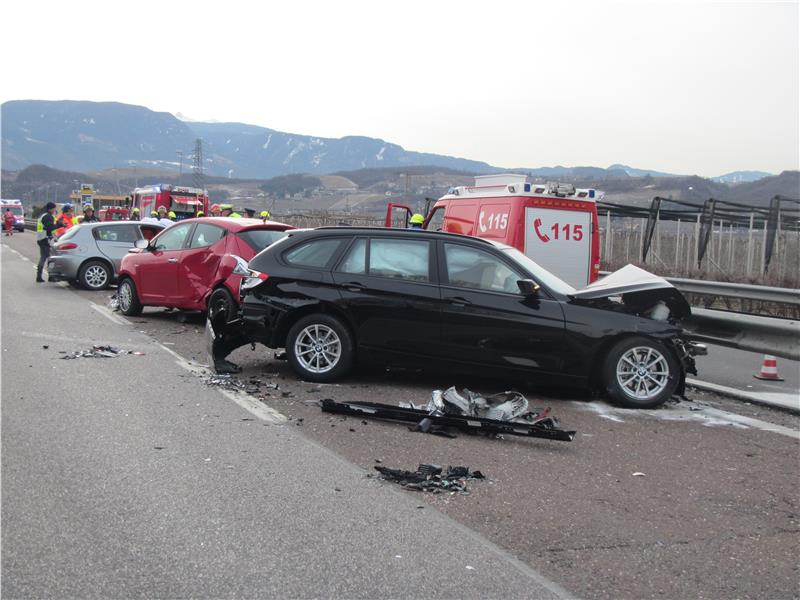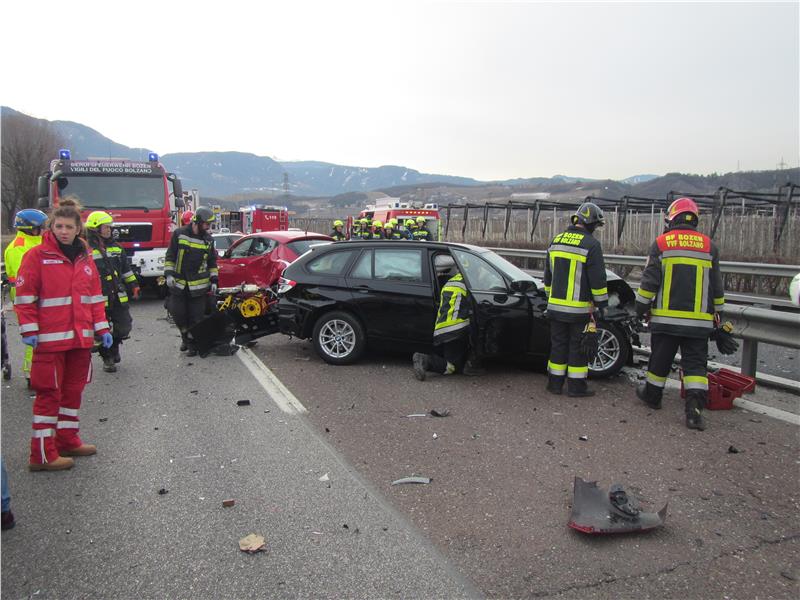 Verso le 09:15 il Corpo Permanente dei Vigili del Fuoco e´intervento per un grave incidente stradale sulla MeBo. Una vettura che per cause da chiarire vaggiava contromano sulla corsia nord della MeBo tra l´entrata Appiano e Terlano ( km 221 ) si é scontrata frontalmente con una BMW . A causa dell´impatto l´ 83 enne che proveniva contromano e´deduto sul colpo , mentre l´autista della BMW riportava lesioni medio-gravi . Coinvolta anche una terza vettura con una persona anch´essa ferita. Entrambe le persone sono state portate all´Ospedale di Bolzano .A causa della completa chiusura della corsia nord fino alle ore 12:00 ca. si sono create lunghe code . Sul luogo dell´intervento erano presenti alcune pattuglie della Questura , Carabinieri , Polizia Stradale , Vigili Urbani ,i Vigili del fuoco volontari di Terlano , cosi come il soccorso sanitario della Croce Bianca e della Croce Rossa , il Pelikan 1 , Notfallseelsorge ed il servizio strade .