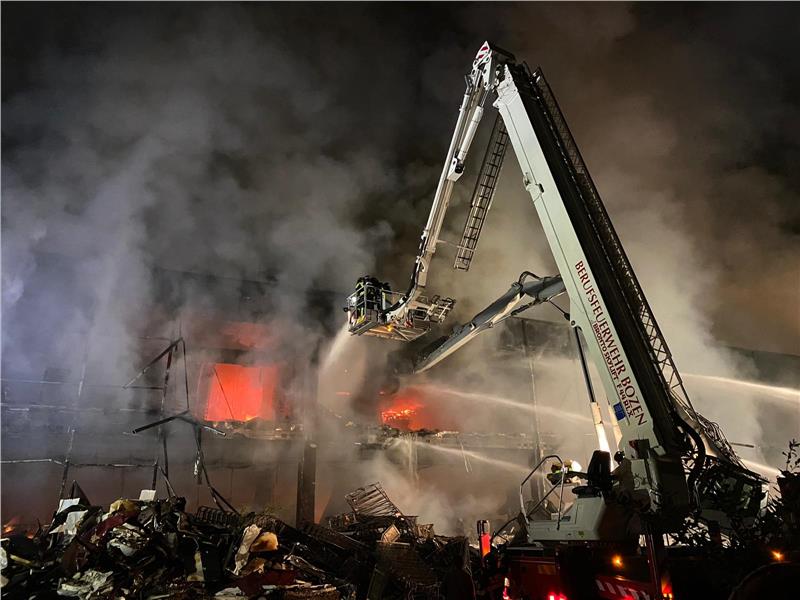 I lavori di spegnimento dureranno ancora minimo 24 ore e vi sará ancora sviluppo di fumo. Attualmente si sta operando con 4 escavatori con pinza per demolire la struttura e raggiungere gli ultimi focolai e procedere con il definitivo spegnimento.