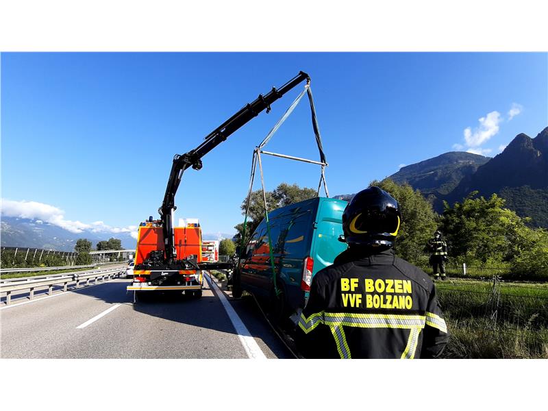 Questa mattina, verso le ore 08:30, il Corpo permanente dei Vigili del Fuoco di Bolzano veniva allertato per un incidente stradale avvenuto sulla corsia Nord della MEBO. All'altezza del Km 219,1 (tra Appiano e Terlano) un furgone era uscito dalla sede stradale. Dopo avere strisciato per oltre 40 metri sul Guard Rail, il furgone rimaneva infine bloccato sopra di questo. Nell'incidente veniva danneggiato il serbatoio del veicolo causando la perdita quasi totale del carburante. Il guidatore non riportava ferite. Dopo la messa in sicurezza dell'area dell'incidente il veicolo veniva recuperato mediante l'utilizzo dell'autogrù. La corsia Nord della MEBO rimane aperta al transito su di un'unica corsia per il tempo necessario al servizio strade di eseguire i lunghi lavori di pulizia e ripristino