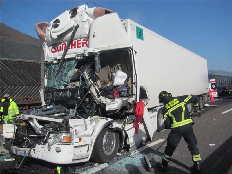 Giovedì 25 febbraio verso le 09.44 il Corpo Permenente dei Vigili del Fuoco di Bolzano è intervenuto per un incidente stradale sull’autostrada del Brennero. In una collisione tra due mezzi pesanti una autista ha riportato ferite gravi ed è stato liberato dalle lamiere dell’abitacolo con l’ausilio dell‘attrezzatura idraulica. Il ferito é stato dapprima assistito dal personale di soccorso presente e successivamente trasportato assieme al medico d’urgenza con l’elicottero all’ospedale di Bolzano. La corsia sud e anche parzialmemnte la corsia nord sono state chiuse al traffico durante le operazioni di soccorso. In intervento oltre al Corpo permanente dei Vigili del Fuoco di Bolzano erano presenti i Vigili del Fuoco Volontari di Egna, la Croce Bianca e la Croce Rossa, il medico d’urgenza con il Pelikan 1 così come la Polizia Stradale e il Personale Ausiliario dell’Autostrada. Sul posto si sono formate lunghe code.