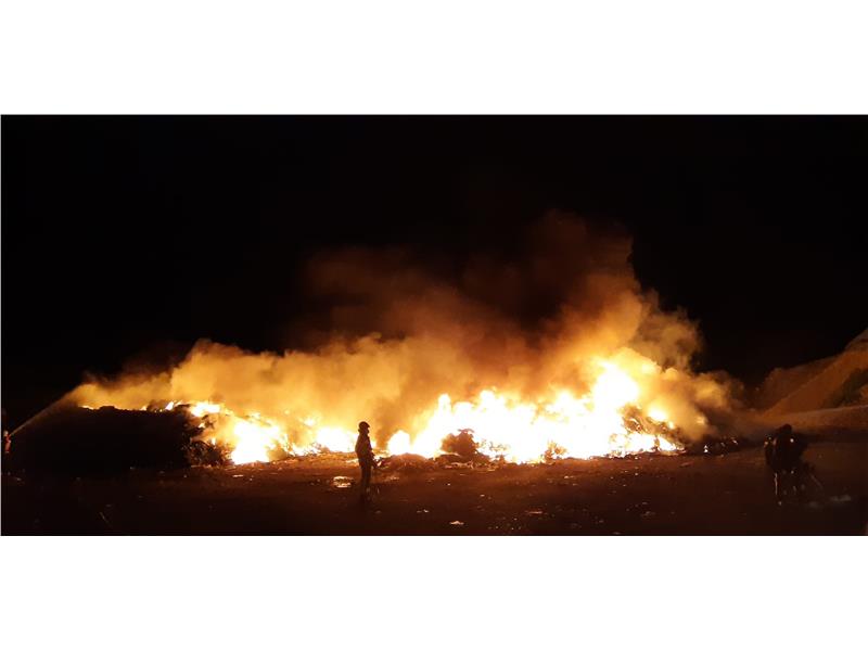 All´arrivo delle prime squadre vi era gia un incendio con un fronte di c.a 70m che interessava la parte Sud della discarica. C.a 600 mc di rifiuti ingrombranti, in parte interi ed in parte giá sminuzzati bruciava.