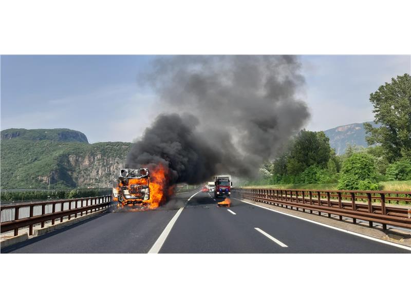 All'altezza di Vadena al KM 100, un camion carico di bottiglie vuote aveva preso fuoco. Quando i vigili del fuoco sono arrivati, il camion era già completamente avvolto dalle fiamme. Gran parte del carico si è sparso su tutta la carreggiata, così la corsia in direzione sud è stata chiusa durante i lavori di spegnimento e sgombero.