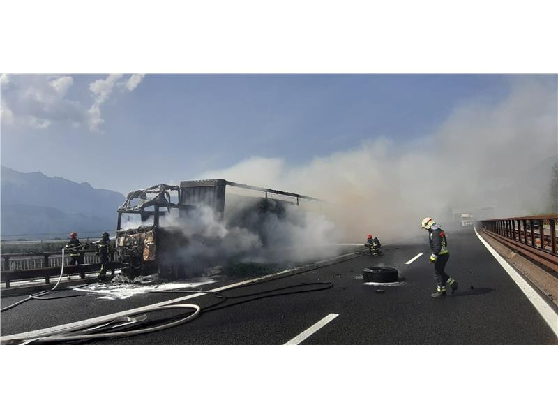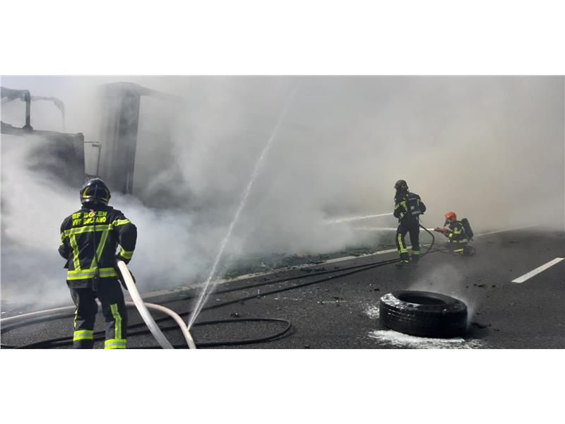 Questo pomeriggio verso le 16:00 il Corpo Permanente dei vigili del fuoco di Bolzano è stato chiamato per un incendio di un camion sulla A22.