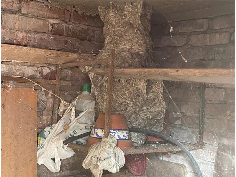Dotati di appositi indumenti speciali di protezione individuale abbiamo rimosso il nido di vespe in modo regolare e sicuro, senza danneggiare le condizioni strutturali.