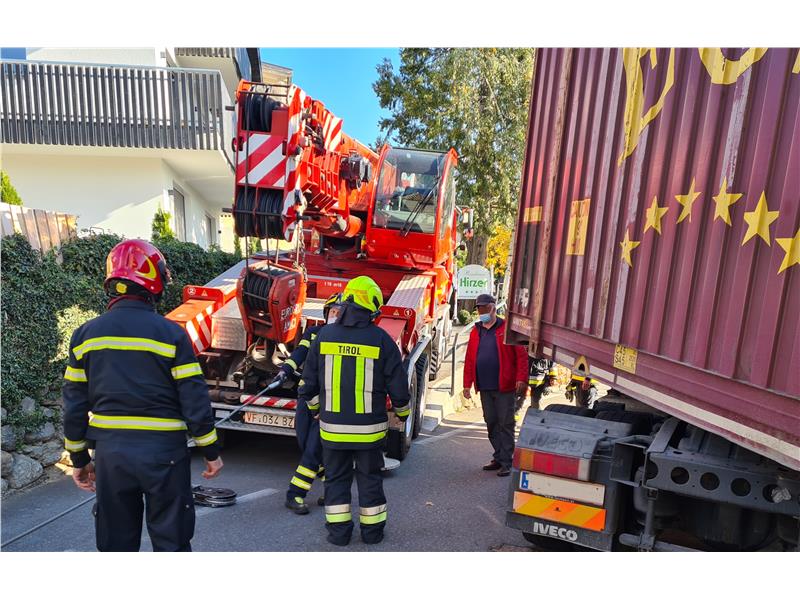 Il Corpo permanente dei Vigili del fuoco di Bolzano è intervenuto oggi mercoledì 20.10.2021 assieme al corpo VVF volontario di Tirolo per il recupero di un mezzo pesante, rimasto incagliato in un vicolo di larghezza ridotta a Tirolo.