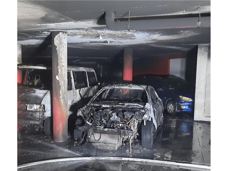 All'arrivo sulla scena, si è scoperto che 3 veicoli erano in fiamme in un parcheggio sotterraneo.