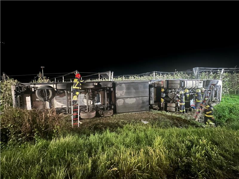 Alle ore 2:52 del 24.03.2022 una squadra del Corpo Permanente dei Vigili del Fuoco di Bolzano è stata chiamata in supporto ai Vigili del Fuoco di Rabla per il recupero di un camion carico di pane che nell’affrontare una curva era uscito di strada rovesciandosi sul lato sinistro.