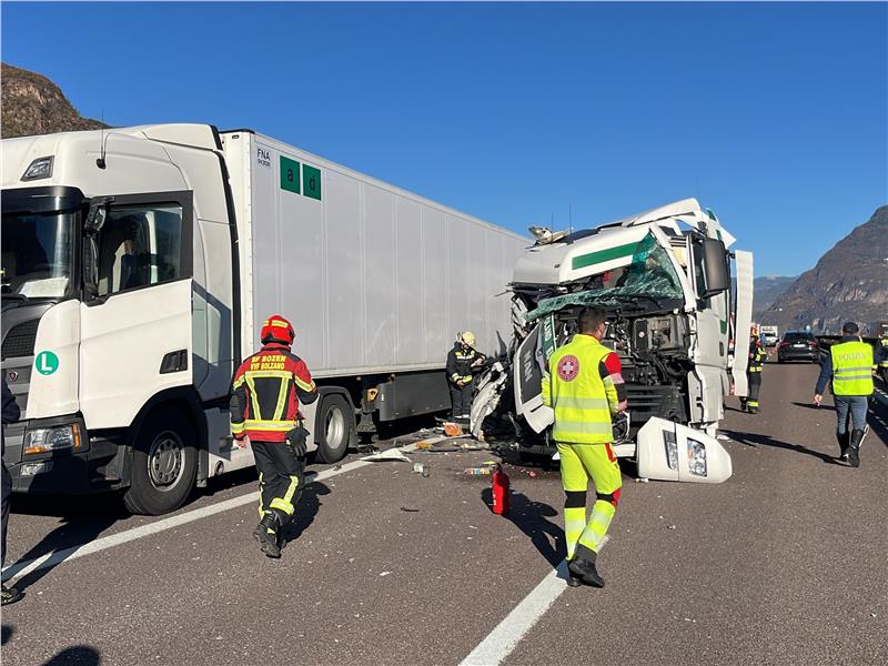 Intorno alle dodici meno un quarto, il Corpo Permanente dei Vigili del Fuoco di Bolzano e quello Volontario di Egna sono stati chiamati per un incidente stradale tra mezzi pesanti sulla carreggiata sud dell'autostrada del Brennero tra Bolzano Sud e Egna, dove era stato istituito un doppio senso di marcia a causa di un cantiere stradale.