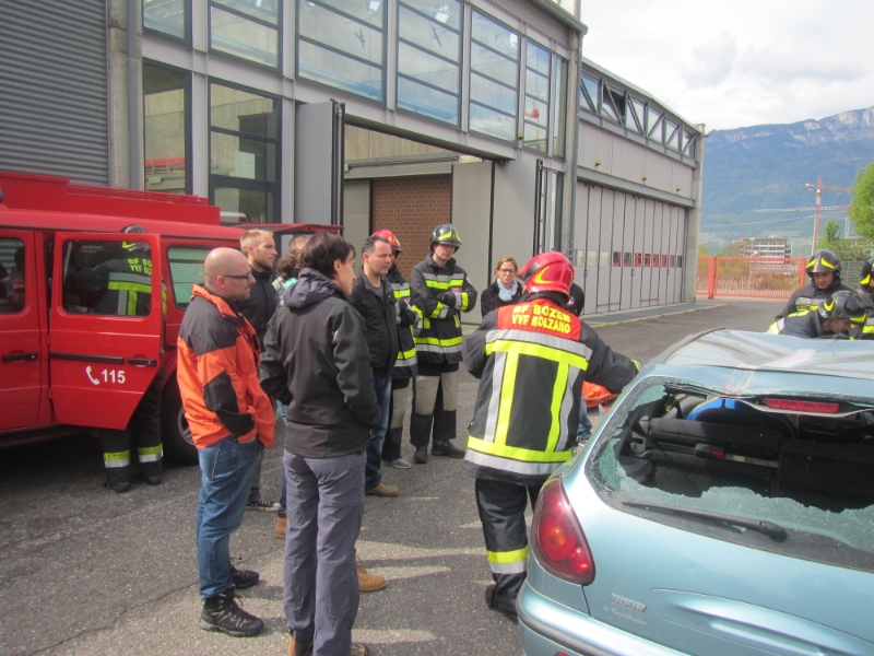 Un gruppo di infermieri professionali dell'azienda sanitaria altoatesina operanti nel soccorso sanitario, accompagnate dalla direttrice del corso sig.ra Zelger Margerete, sabato hanno terminato una esercitazione svoltasi in mattinata assieme alla squadra di intervento del Corpo permanente dei vigili del fuoco di Bolzano.