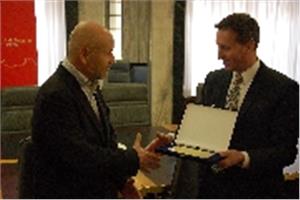 "Un sentito ringraziamento per l'impegno dimostrato durante i 26 anni di servizio a favore della Città di Bolzano". Questa la frase incisa sulla targa consegnata stamane dal Sindaco Renzo Caramaschi e dagli Assessori comunali Luis Walcher e Angelo Gennaccaro a Ernst Preyer che, dopo appunto 26 anni di attività di cui 22 al vertice, ha lasciato il comando del Corpo Permanente dei Vigili del Fuoco presso l'Agenzia provinciale della Protezione Civile. Ernst Preyer, ha inciso profondamente e con merito nell'attività dei Vigili del Fuoco professionali e nel sistema complessivo del soccorso. Per il suo grande impegno a beneficio della comunità cittadina Sindaco e Assessori comunali hanno voluto ringraziare il comandante uscente. Al comandante Preyer è subentrato l'ex vice Florian Alber di Merano, oggi presente all'incontro così come lo "storico" funzionario Guido Ferrari.